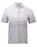 Paragon Adult Belmont Middle Stripe Polo. Designer patterns elevate this new sublimated heather polo.  Surprisingly soft with a tailored fit, it's built to stand up to wear and stretching while keeping its crisp edge.  95% Microfiber Polyester/5% Spandex. Features a fashion self collar and hemmed sleeves with a tagless ParagonXP label.  UPF 30+ sun protection rating.  4.7 oz.